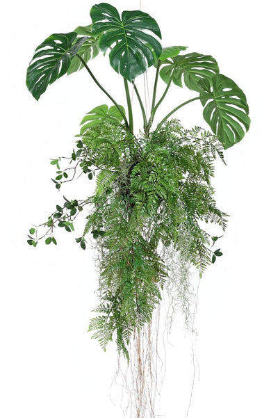 Geef jouw interieur een verfrissende en stijlvolle update met de kunst hangplant Monstera/Varen bal 100 cm XL. Bestel vandaag nog en geniet van het groen zonder zorgen!