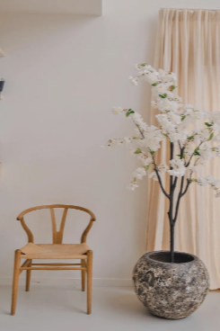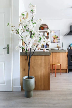 De kunst kersenbloesem is vervaardigd van hoogwaardige materialen, wat zorgt voor een realistische en duurzame uitstraling. De delicate witte bloesems en de lange, sierlijke takken creëren een natuurlijke en stijlvolle look die moeiteloos past bij elk interieur, van modern tot klassiek.