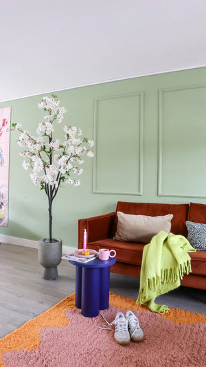 Je hoeft je geen zorgen te maken over water geven, snoeien of het verwelken van de bloemen. Plaats deze kunst kersenbloesem in een mooie vaas en geniet direct van de tijdloze schoonheid en rustgevende sfeer die deze plant met zich meebrengt. Perfect voor jou als je houdt van een elegante decoratie zonder het onderhoud van echte bloemen.
