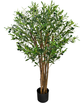 De kunst olijfboom met een hoogte van 120 cm is vervaardigd met prachtige kunststof olijfbladeren en natuurgetrouw ogende olijven. Hierdoor krijgt de boom een levensechte uitstraling. Jij zult het verschil met een echte olijfboom nauwelijks merken. Deze kunst olijfboom brengt een vleugje Mediterrane sfeer in je huis of tuin, zonder dat je je zorgen hoeft te maken over het onderhoud.