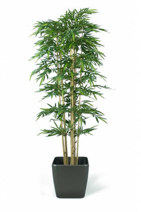 Zonder twijfel een van de meest spectaculaire kunstbomen uit onze uitgebreide collectie is deze Kunstplant Nieuwe Bamboe. Met een indrukwekkende hoogte van 3.00 m. torent de fraaie kunstboom boven iedereen uit. Deze plant is gemaakt van echte bamboestokken en van top tot teen voorzien van karakteristieke bamboebladeren van kunststof. Maak er een schitterend geheel van door de kunstplant in een luxe plantenbak te plaatsen. De kunst bamboe is tevens verkrijgbaar in kleinere formaten. Leuk om te combineren. Een prachtige verschijning waarmee u grote en hoge ruimtes moeiteloos gezelliger en sfeervoller maakt.