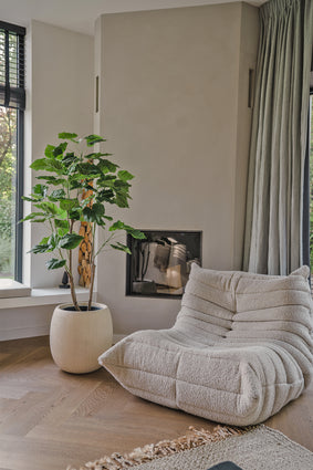 De kunstplant Ficus wordt geleverd in een eenvoudige pot die je naar eigen smaak kunt inrichten. Plaats de plant in een decoratieve overpot om hem nog meer in je interieur te laten passen. Dankzij de flexibele takken kun je de plant bovendien makkelijk aanpassen en in de gewenste vorm brengen.