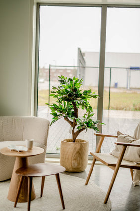 Onze kunstplanten zijn nauwelijks van echt te onderscheiden dankzij het gebruik van hoogwaardig polyester en stammen van echt hout, wat zorgt voor een natuurlijke uitstraling. Ze vergen weinig onderhoud; af en toe afnemen met een zachte borstel of vochtige doek houdt ze fris en mooi. Met een levensduur van 10 tot 15 jaar zijn onze kunstplanten bovendien een duurzame en langdurige keuze.