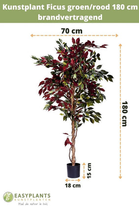 Pluspunten van de Kunstplant Ficus groen/rood 180 cm brandvertragend