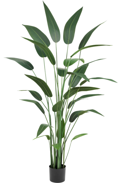 Breng een vleugje tropische elegantie in uw interieur met de kunstplant Heliconia van 180 cm hoog. Deze indrukwekkende kunstplant, met zijn opvallende bladeren, is een perfecte imitatie van de echte Heliconia, ook wel bekend als de 'valse vogel van het paradijs'. De levendige kleuren en de gedetailleerde afwerking van de bladeren zorgen voor een realistische uitstraling, waardoor deze plant een eyecatcher is in elke ruimte.