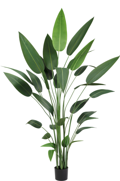 Met de kunstplant Heliconia 210 cm haal je niet alleen een prachtige decoratie in huis, maar ook een stukje natuur dat je interieur naar een hoger niveau tilt. Laat je inspireren door de schoonheid en eenvoud van deze uitzonderlijke kunstplant en geniet van een tijdloze toevoeging aan je leefruimte.