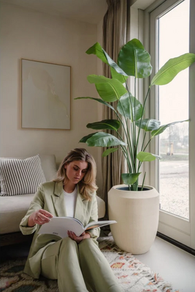 Onze kunstplanten zijn nauwelijks van echt te onderscheiden dankzij het gebruik van hoogwaardig polyester en stammen van echt hout, wat zorgt voor een natuurlijke uitstraling. Ze vergen weinig onderhoud; af en toe afnemen met een zachte borstel of vochtige doek houdt ze fris en mooi. Met een levensduur van 10 tot 15 jaar zijn onze kunstplanten bovendien een duurzame en langdurige keuze.