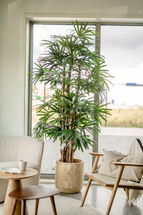 • Natuurlijke uitstraling: De Lady Kunstpalm heeft realistisch ogende bladeren en een gedetailleerde stam, waardoor hij nauwelijks van een echte palm te onderscheiden is.