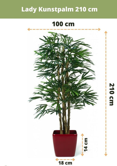 Breng een indrukwekkende tropische sfeer in je interieur met onze Lady Kunstpalm van 210 cm. Deze kunstpalm is met zorg ontworpen om de weelderige en exotische uitstraling van een echte palmboom te evenaren, zonder het onderhoud dat levende planten vereisen.