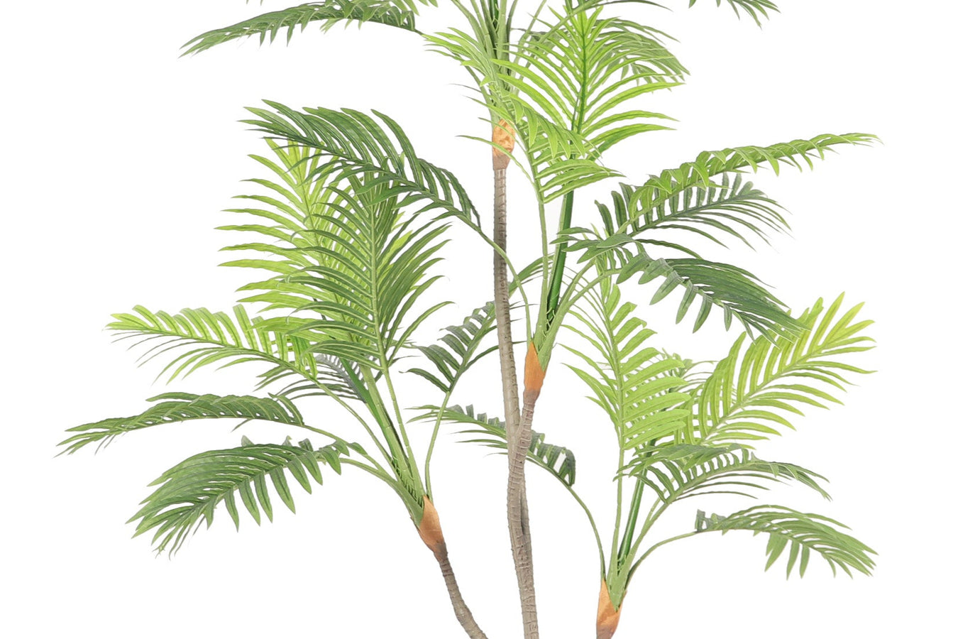 De kunstplant is natuurgetrouw ontworpen en vervaardigd uit hoogwaardige materialen, waardoor hij nauwelijks van een echte palm te onderscheiden is. Hij blijft jarenlang mooi zonder dat water, zonlicht of speciale verzorging nodig is.